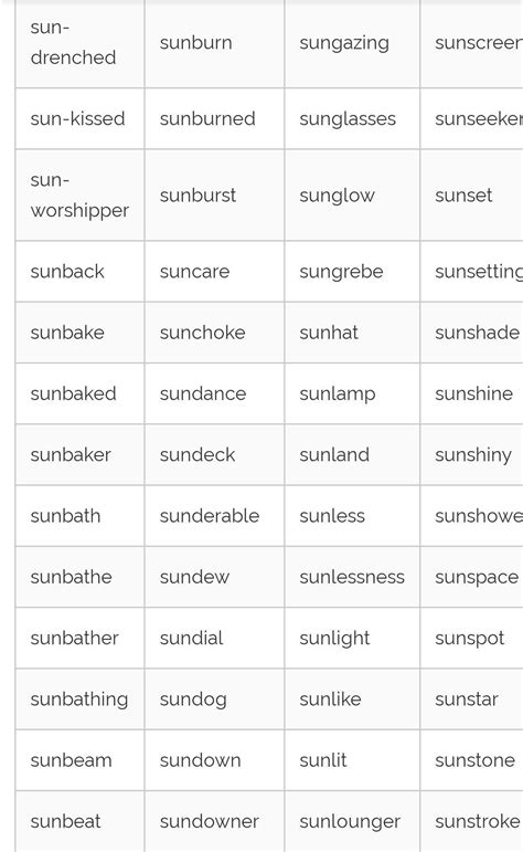 Web 88 Compound Words Starting With 'Sun'.