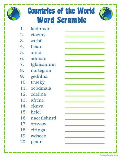Web word scramble game what is word scramble game. Countries of the world word scramble to download and print. If you like puzzles then make our country word scramble your next challenge.