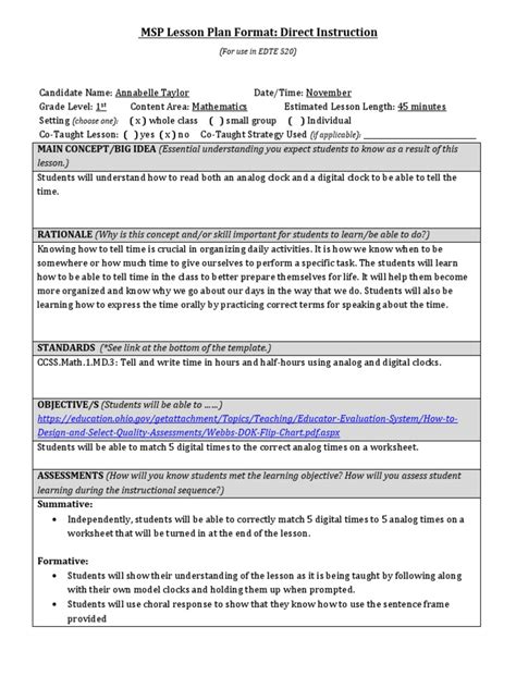 Standard(s) Direct Instruction Lesson Plan Template Eckert from www.scribd.com