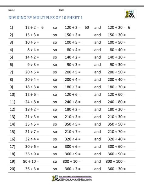 Web Dividing Multiples Of 10 Using Known Facts A5 Worksheet / Worksheet.